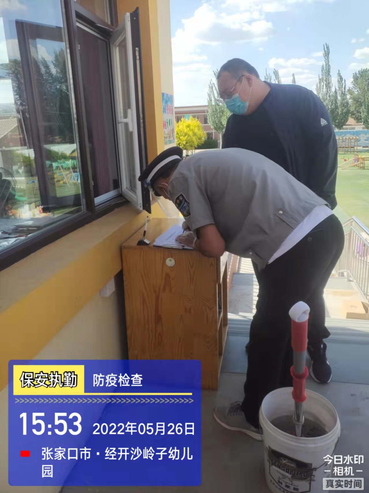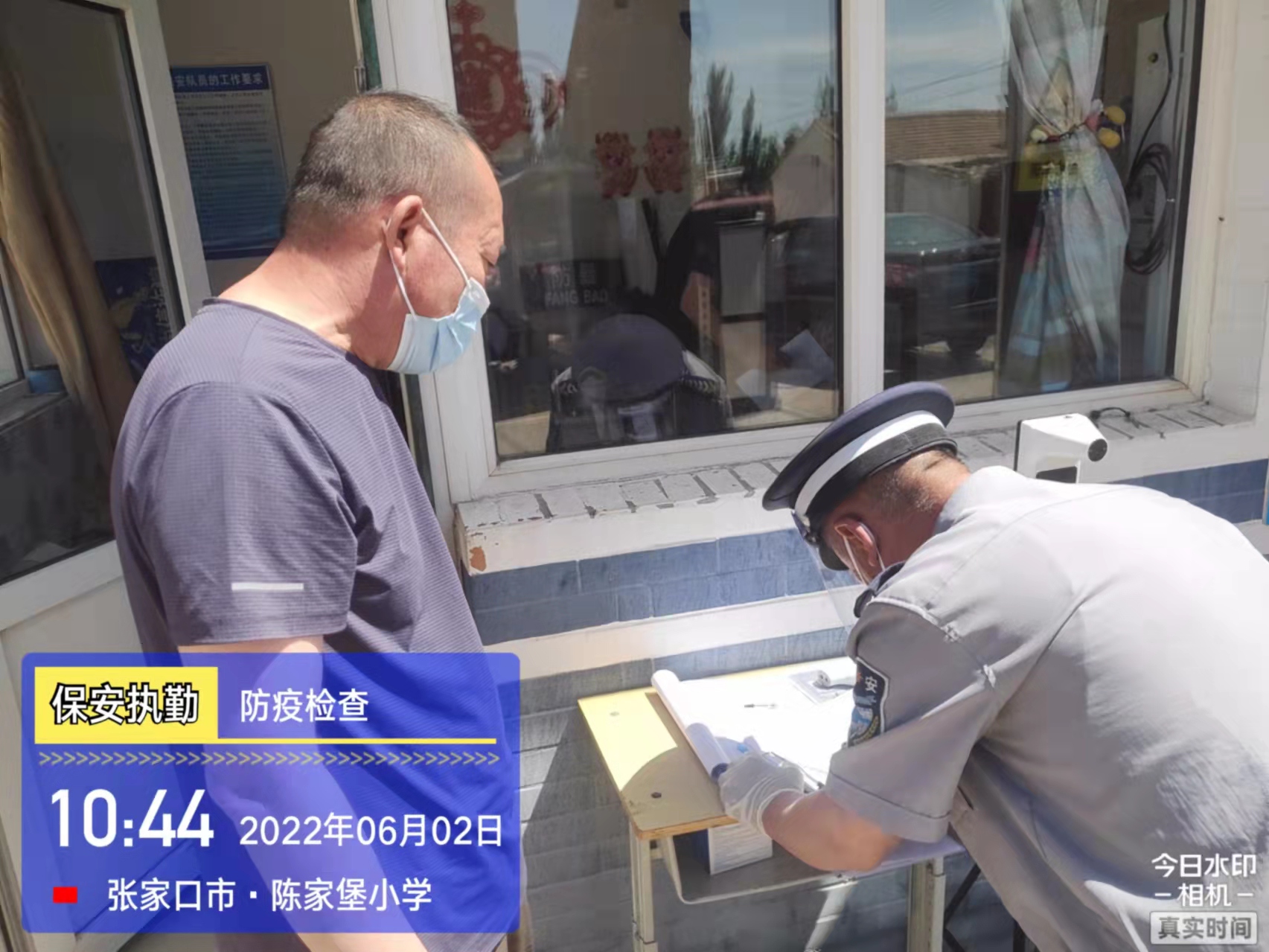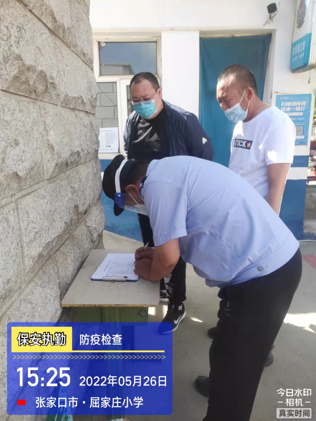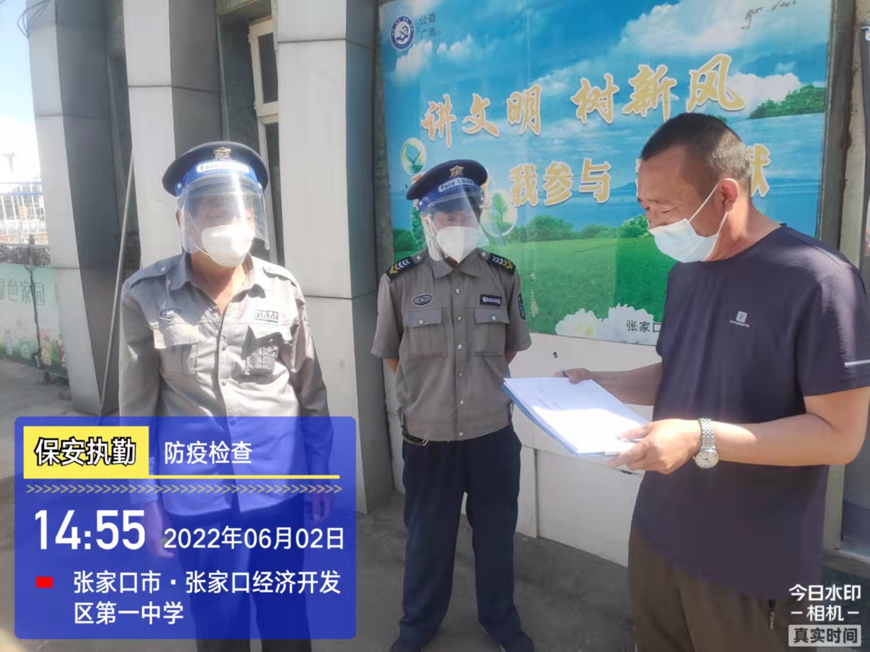 會后,我公司迅速召開“疫情期間學校門衛(wèi)安全防控工作要求”的會議,制定了校園安全防疫規(guī)定:疫情防控期間,校園保安隊員必須穿制服,規(guī)范佩戴“三件套”(防護隔離面罩、N95口罩、一次性PVC手套);進出校園的師生必須測量體溫,外來人員需登記、測溫、掃碼(幸福張家口,呈綠碼)、且持7日內(nèi)核酸陰性檢測結(jié)果;保安室需保持干凈整潔,物品擺放有序,勤開窗通風,定期噴灑消毒藥水。為此,公司特成立校園防疫檢查小組,由副經(jīng)理帶隊,協(xié)同主管大隊長對經(jīng)開區(qū)所有中小學校安保崗位進行防疫工作檢查,檢查期間,發(fā)現(xiàn)問題,現(xiàn)場處理,并及時與校方領(lǐng)導溝通,杜絕同樣問題再次出現(xiàn),確保校園防疫安保工作萬無一失,為各校師生鑄就一道安全防線!